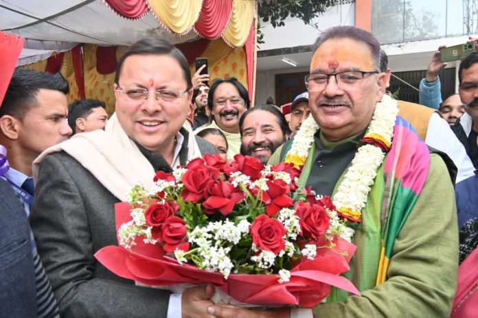 कैबिनेट मंत्री गणेश जोशी के जन्मदिवस पर बधाई देने पहुँचे मुख्यमंत्री पुष्कर सिंह धामी सहित वरिष्ठ बीजेपी नेता