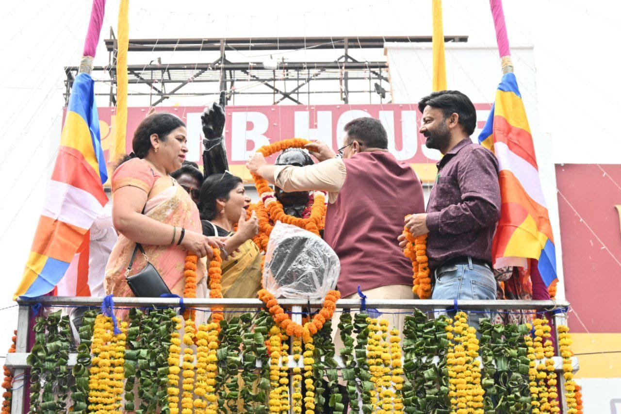 घंटाघर स्थित भारत रत्न बाबा साहेब भीमराव अंबेडकर की जयंती के अवसर पर उनकी प्रतिमा पर फूल माला चढ़ाकर उन्हें श्रद्धासुमन अर्पित कैबिनेट मंत्री गणेश जोशी ने की