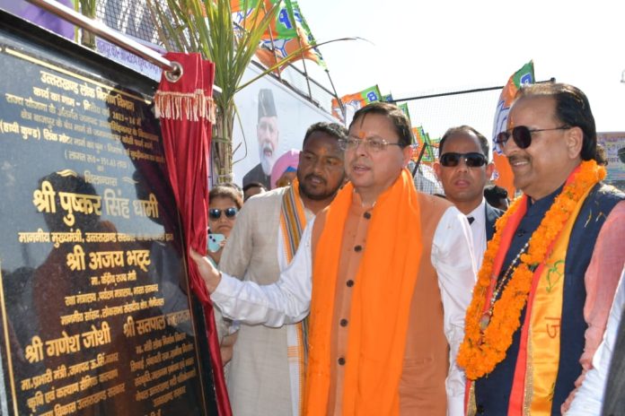 मुख्यमंत्री धामी ने 16.34 करोड़ की विभिन्न योजनाओं का किया लोकार्पण एवं शिलान्यास, क्षेत्र के विकास के लिये की अनेक घोषणा।