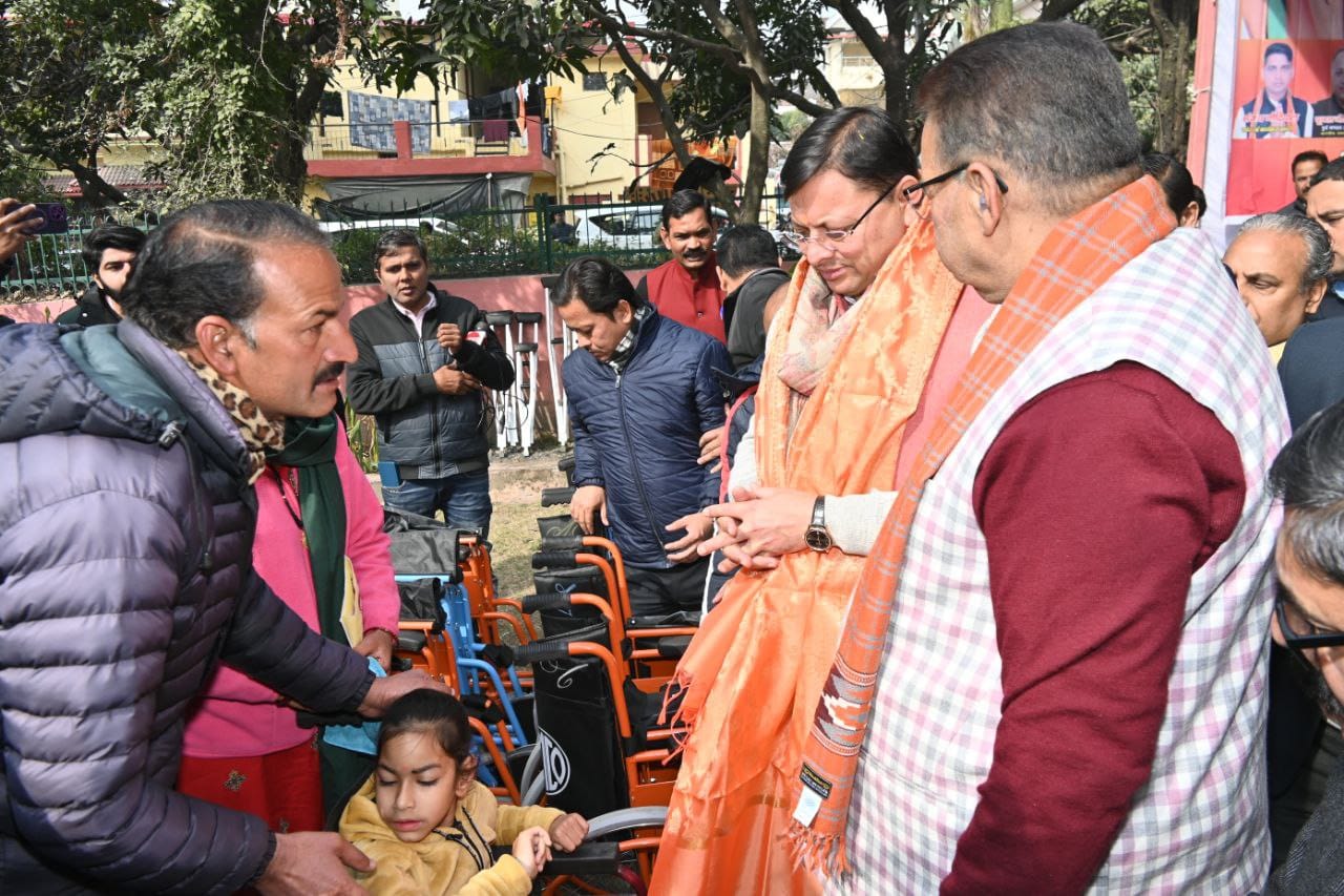 मुख्यमंत्री पुष्कर सिंह धामी और कैबिनेट मंत्री गणेश जोशी ने शिविर में आंख, कान की जांच सहित चश्मे, कान की मशीन, छड़ी, ट्राईसाइकिल, व्हीलचेयर जैसे जरुरतमंद उपकरण दिव्यांगजनों को प्रदान किये