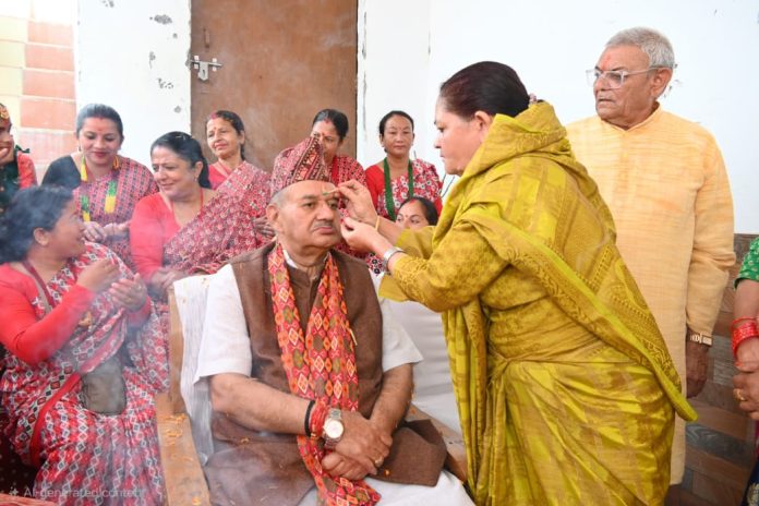 भाई-बहन के स्नेह, प्रेम और विश्वास के प्रतीक पर्व भाईदूज के अवसर पर आज कैबिनेट मंत्री गणेश जोशी देहरादून स्थित अपने विधानसभा क्षेत्र के गल्जवाड़ी में बहनों के बीच पहुंचे। इस अवसर पर बहनों ने मंत्री जोशी का तिलक कर पारंपरिक रीति से उनका स्वागत किया।