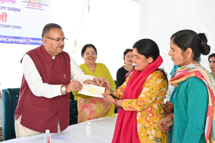 कैबिनेट मंत्री गणेश जोशी ने आज मसूरी विधानसभा क्षेत्र के अर्न्तगत किमाड़ी में आपदा प्रभावित उद्यमियों को बड़ी राहत देते हुए ग्रामोत्थान (रीप) परियोजना के तहत विकासखण्ड सहसपुर के विभिन्न गांवों के 63 परिवारों को रुपये 60 लाख से अधिक की सहायता राशि के चौक वितरित किए गए।